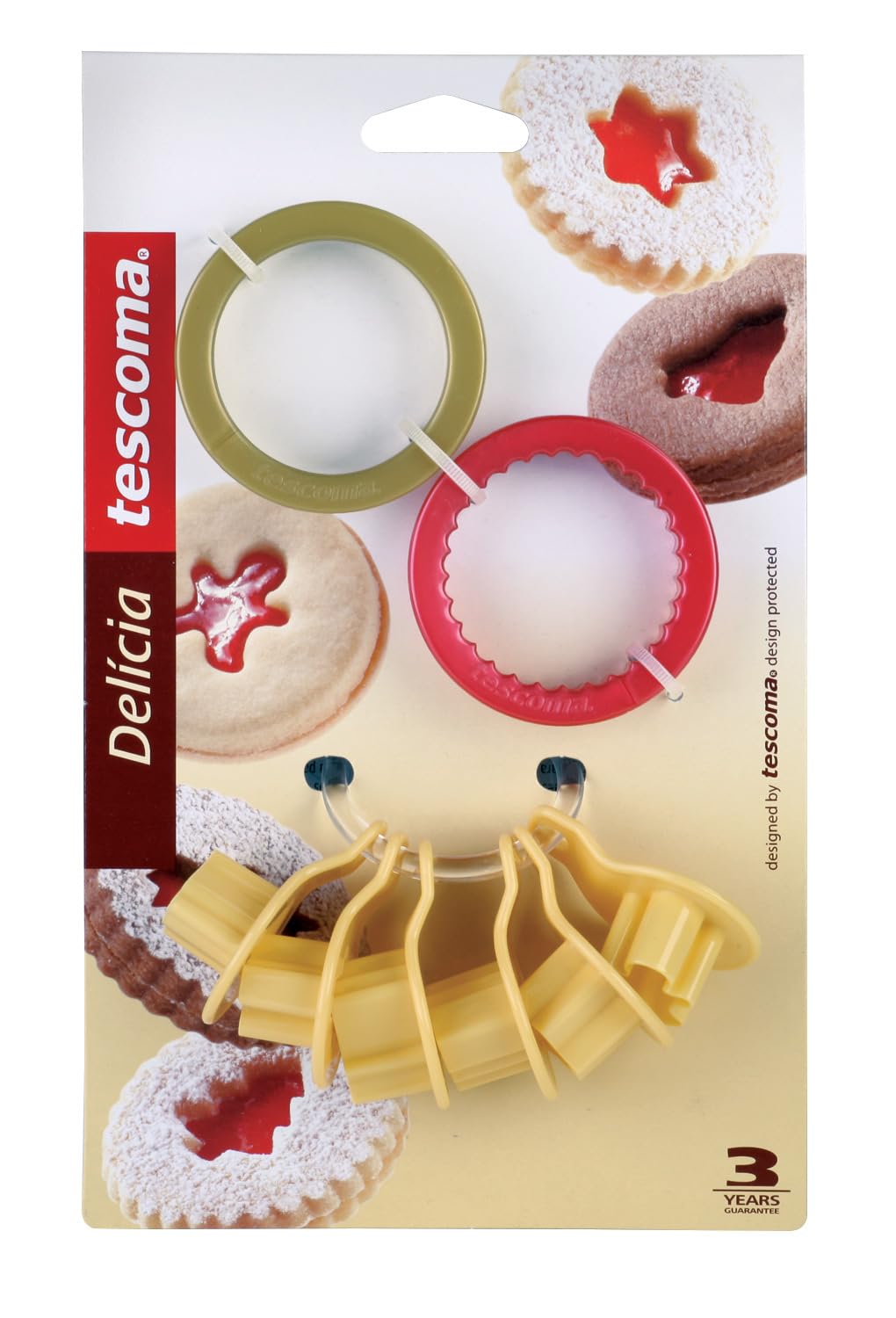 Set prerësesh për biskota, ideal për përgatitjen e frollinave të shijshme. Seti përbëhet nga 2 prerëse të rrumbullakëta me buzë të lëmuar dhe të valëzuar, si dhe 6 mini prerëse me temë Krishtlindjeje për prerjen e pjesës qendrore të biskotës. Të pajisura me një unazë praktike për t’i ruajtur në mënyrë të rregullt pas çdo përdorimi. Të prodhuara nga plastikë rezistente me cilësi të lartë. Lahet në enëlarëse. Garanci 3 vjet.